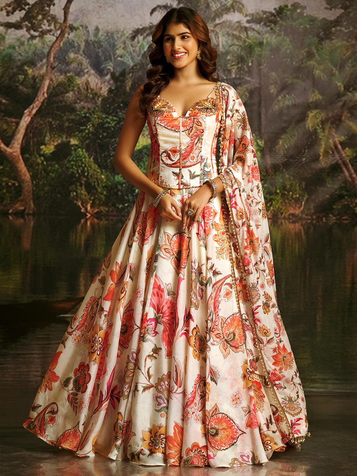 Off-White Floral Elegance Luxe Finish Outfit Lehanga