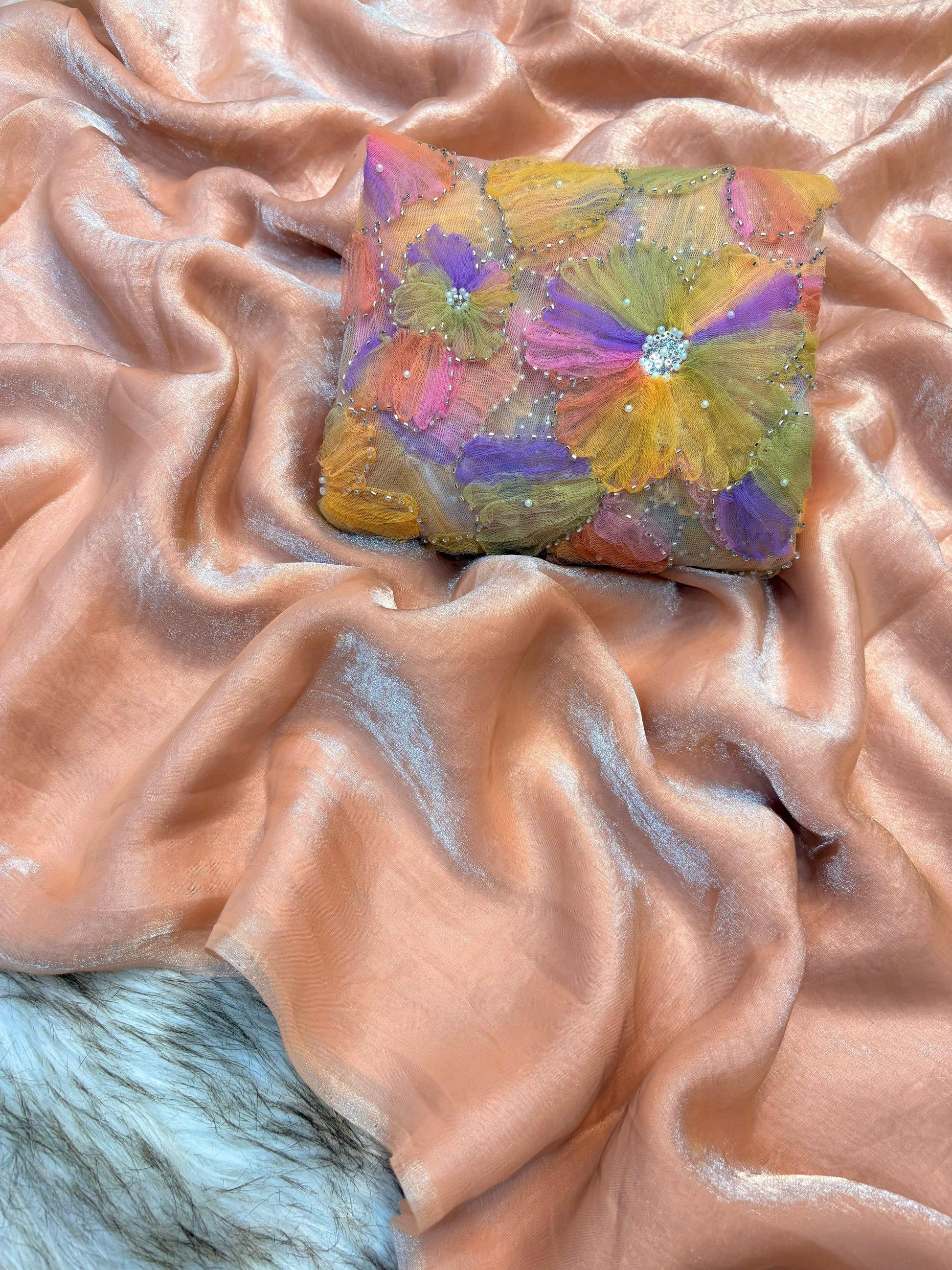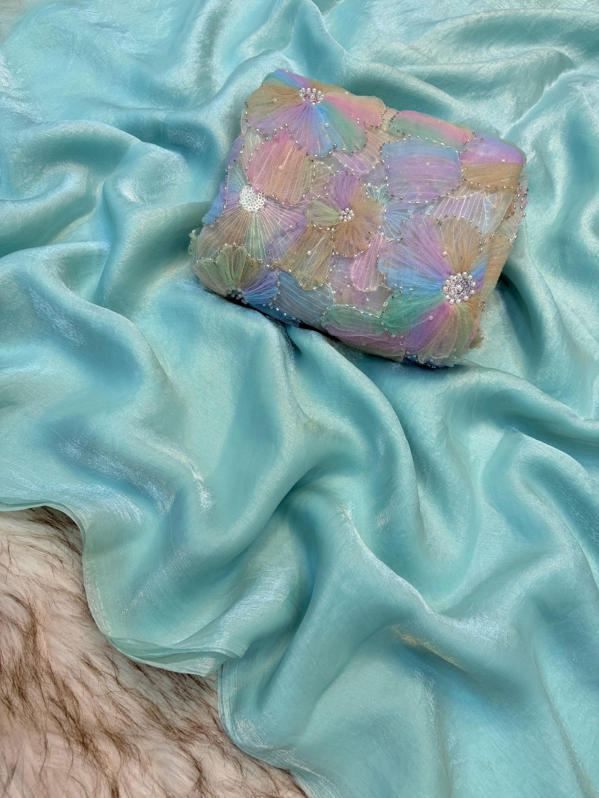 Blouse :- Soft net with beautiful Multi color ribbon work & beads work designer blouse
